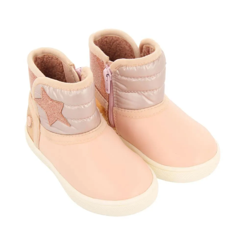 Er wird sie lieben! Rosa gefütterte Stiefel mit Glitzer, Reißverschluss und verstellbarem Verschluss.