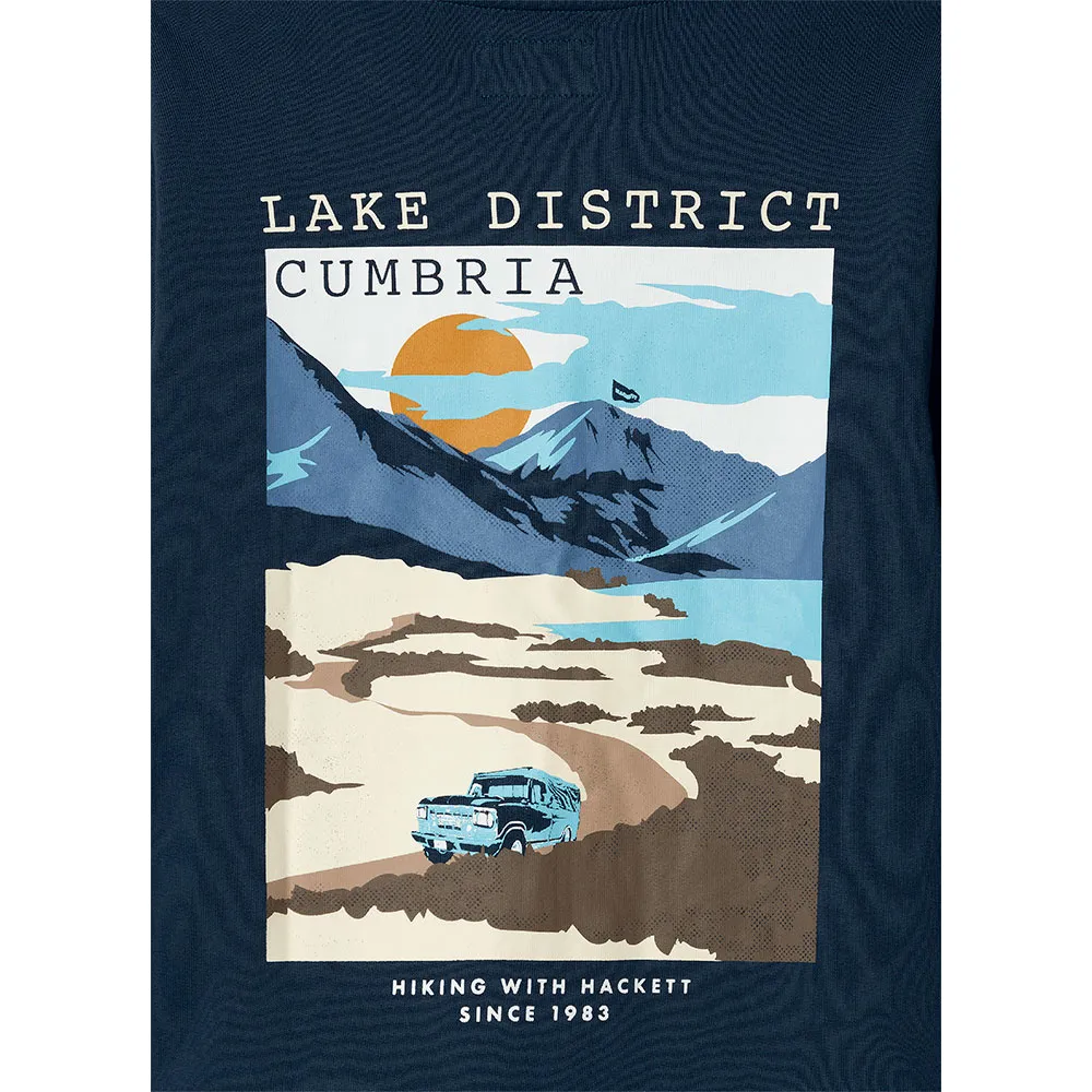 Großer Bergmotiv-Grafikdruck auf dem Rücken.