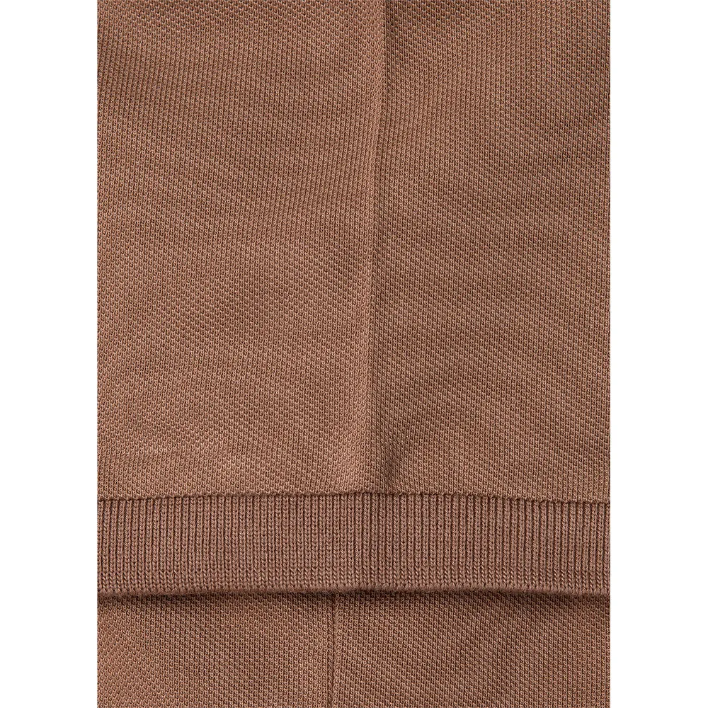 Zu den wichtigsten Merkmalen gehören der klassische gerippte Polokragen und eine saubere Zwei-Knopf-Leiste, die verstellbaren Komfort und Stil ermöglicht. Die kurzen Ärmel sind mit fein gerippten Bündchen versehen, die dazu beitragen, die Struktur des Kleidungsstücks zu erhalten und eine hervorragende Passform zu gewährleisten. Das markanteste Detail ist das ikonische Hackett-Schirm-Logo, das dezent und fachmännisch auf der linken Brustseite aufgestickt ist – ein Symbol für hochwertige Handwerkskunst und authentisches britisches Erbe. Das edle Piqué-Gestrick des Stoffes verleiht eine subtile Textur und Tiefe und unterstreicht das hochwertige Gefühl und Aussehen.
