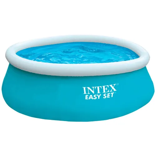 Intex faltbares kreisförmiges Schwimmbad mit aufblasbarem Oberring aus dem Easy Set-Sortiment mit den Maßen 183 x 51 cm und einem Fassungsvermögen von 880 Litern Wasser für 2 oder 3 Personen (ab 6 Jahren). & Nbsp; Canvas mit SuperTough-Technologie und drei Schichten aus besonders starkem Laminatmaterial, die hohe Widerstandsfähigkeit und Haltbarkeit bieten. Einfach zu installieren: Legen Sie das Gerät auf festem und ebenem Boden aus, blasen Sie den oberen Ring auf und füllen Sie ihn mit Wasser auf. In ca. 10 Minuten ist er einsatzbereit.