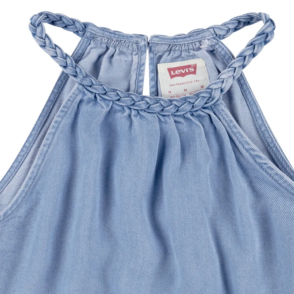 Wirbel in den Sommer mit dem LEVI´S® KIDS Neckholder-Stufenkleid, einer verspielten und stilvollen Wahl für jedes Abenteuer bei warmem Wetter. Dieses bezaubernde Kleid hat eine verspielte Stufen-Silhouette für einen Hauch von Boho-Chic-Flair und einen fließenden, dynamischen Look. Das ärmellose Neckholder-Design und der leichte, atmungsaktive Stoff sorgen dafür, dass sie kühl und bequem bleibt, während die strapazierfähige, hochwertige Verarbeitung perfekt für aktives Spielen ist. Vielseitig genug für Partys oder Parktage, kombiniert es zeitlose LEVI´S® Qualität mit mühelosem Stil und ist somit ein Garderoben-Must-have