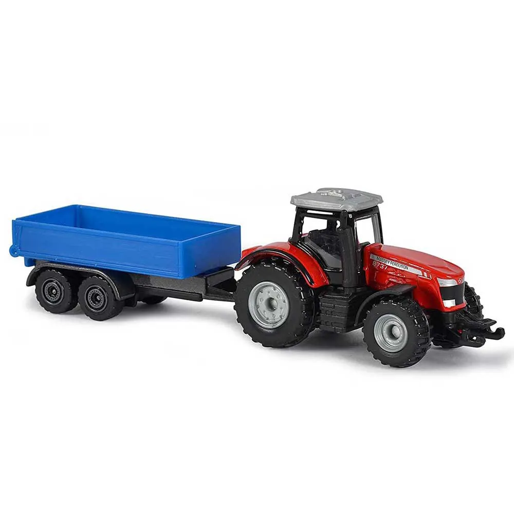Roter majorette-traktor mit blauem eisenkarren