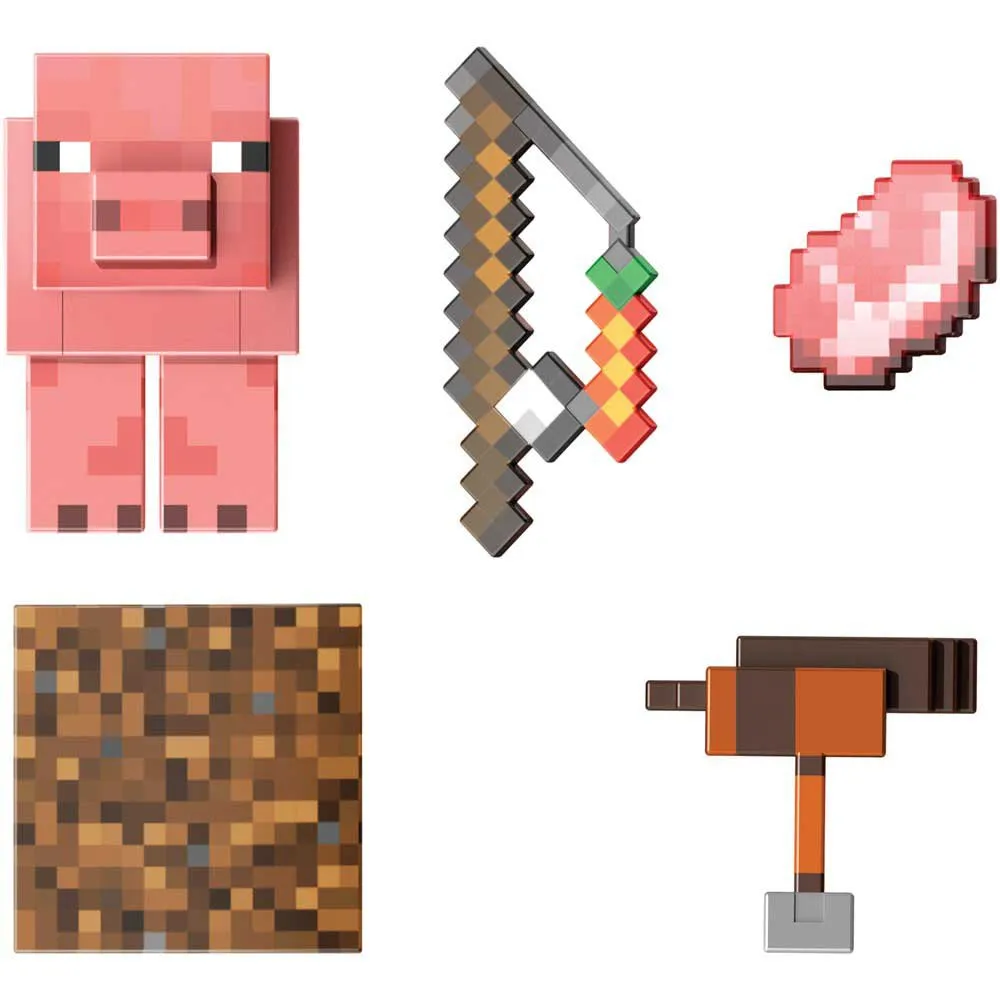 Diese detaillierte Schweine-Actionfigur enthält eine Karotte an einem Stock, einen Erdblock und einen Sattel sowie ein stinkendes rohes Schweinekotelett-Accessoire! Dieses Schwein ist perfekt zum Spielen und Ausstellen, ist beweglich und bildet das charakteristische pixelige Design von Minecraft originalgetreu nach.