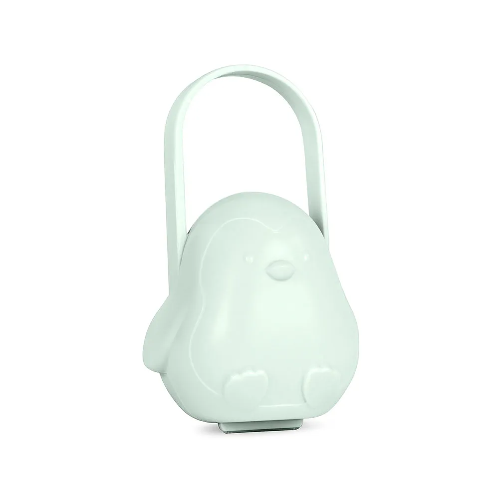 Entdecken Sie die Miniland-Produktreihe an pinguinförmigen Schnullerhaltern mit Tragegriff, die den Schnuller Ihres Babys jederzeit sauber und geschützt halten.