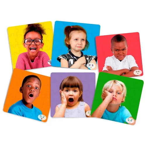 Set mit 6 Puzzles, ideal zum Erlernen von Gesichtsausdrücken und grundlegenden Emotionen.