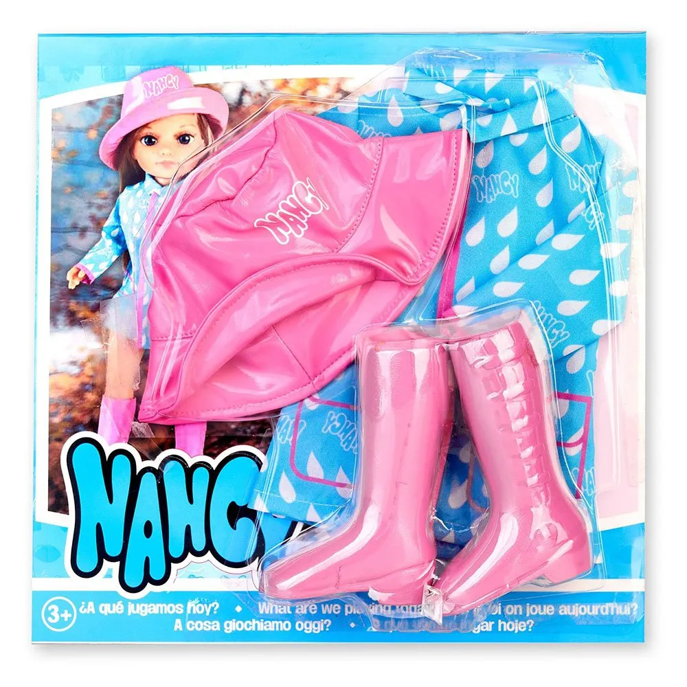 Es enthält rosa Gummistiefel, mit denen Nancy in alle Pfützen springen und Spaß ohne Ende haben kann.