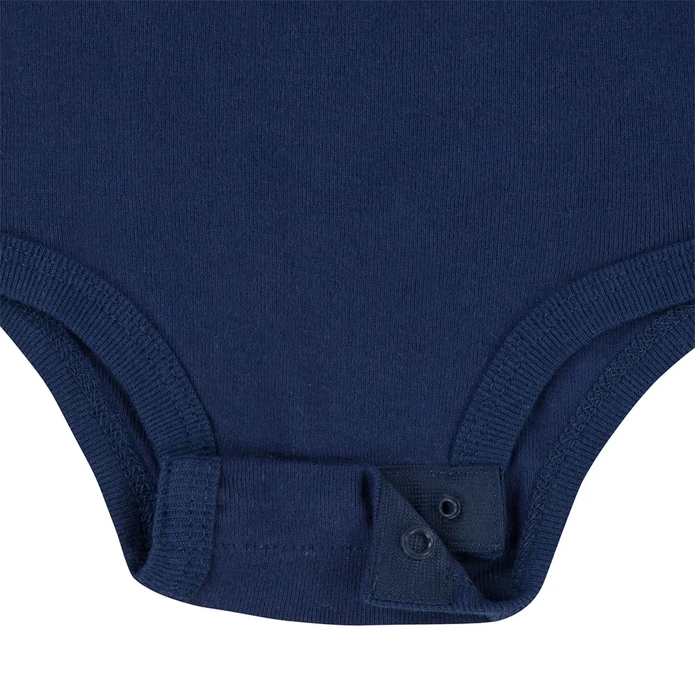 Dieses 5-teilige Geschenkset enthält aufeinander abgestimmte Essentials aus weichem Strickstoff, der sich sanft auf der empfindlichen Babyhaut anfühlt. Die Bodys haben überlappende Schultern und Druckknopfverschlüsse im Schritt für einfaches Wickeln und Anziehen. Das Lätzchen hat Klettverschlüsse für einen bequemen Sitz, und die passende Mütze und die Söckchen sind mit einem Logo-Stick versehen.