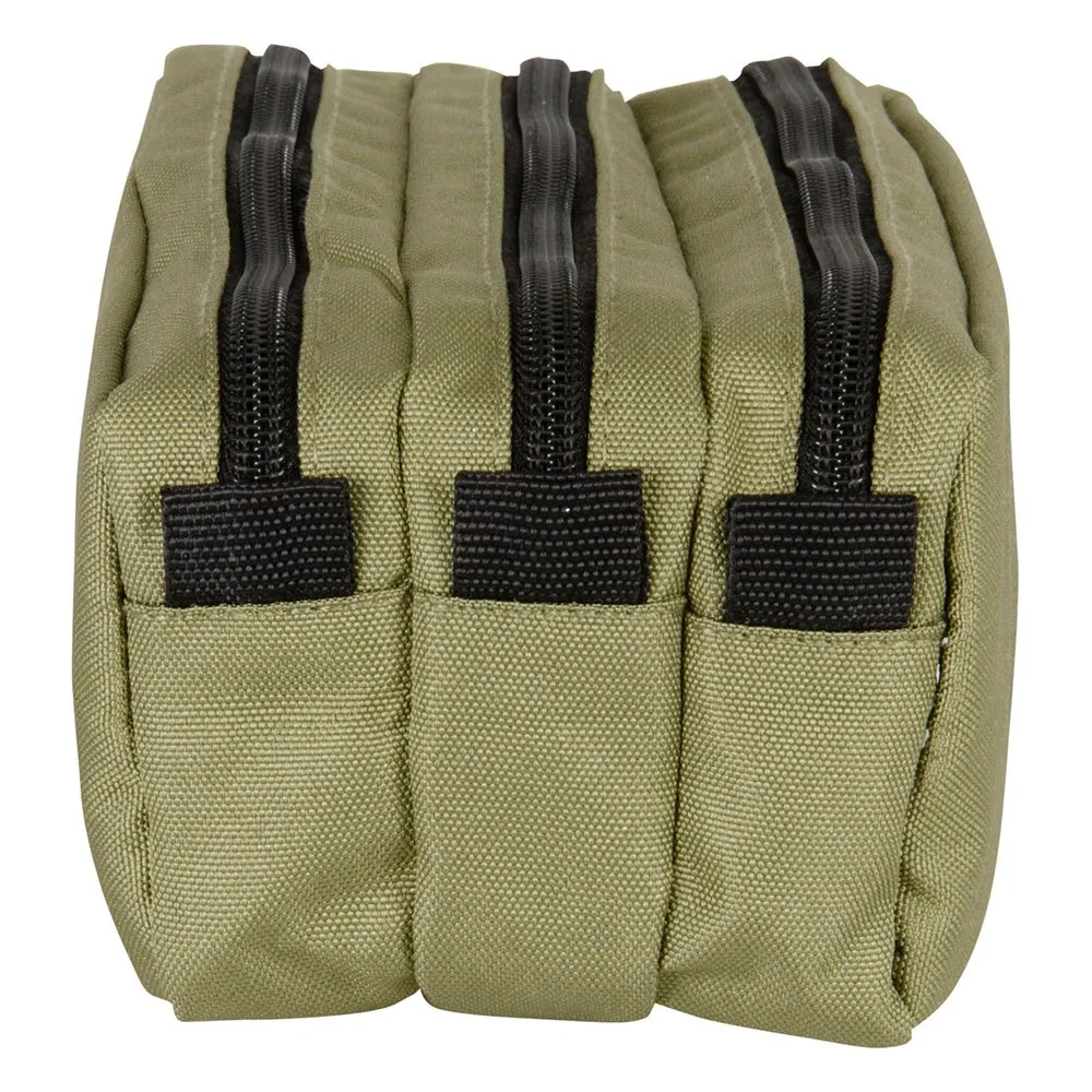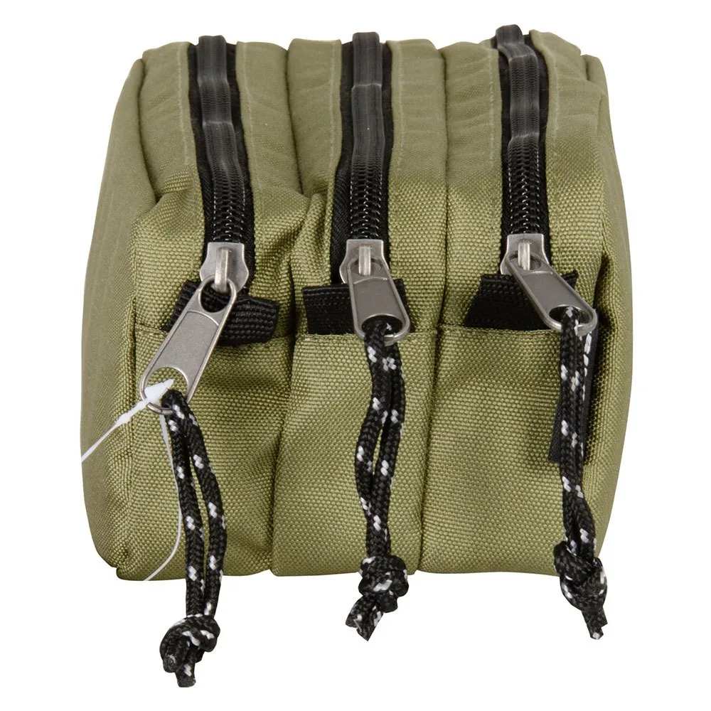 3 durch Reißverschlüsse getrennte Fächer.