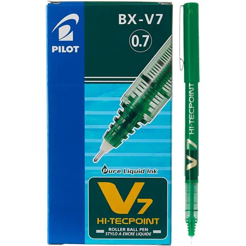 Packung mit 12 Pilot BX V7 Hi-Tecpoint Filzstiften, grüne Flüssigtinte, mit Tintenschauglas.