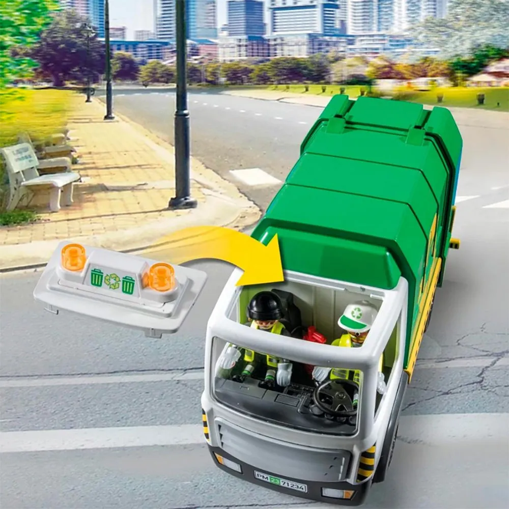 The Playmobil recycling truck is a playset that allows boys and girls to explore the recycling process in a fun and educational way. This set includes a detailed recycling truck, equipped with everything needed to collect, transport, and sort different types of recyclable materials.