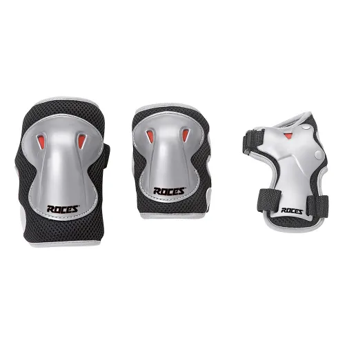 Das Junior Super 3er-Pack enthält Handgelenkschützer, Ellbogenschützer und Knieschützer, die einfach zu tragen, belüftet und unverzichtbar sind, damit Kinder sicher skaten können. Diese Protektoren wurden speziell von Roces entwickelt, um das Verletzungsrisiko zu reduzieren. Dieses Produkt übertrifft die Standards für Sportschutzausrüstung.