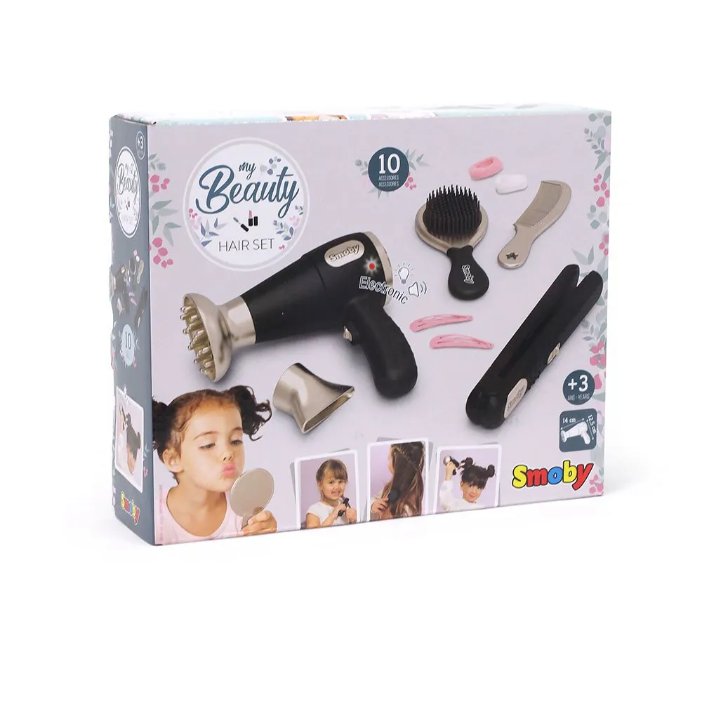 Werden Sie zum Mini-Friseur mit dem SMOBY Frisierset! Entwickelt für Kinder ab 3 Jahren, enthält dieses farbenfrohe Set alles für kreativen Spielspaß. Nutzen Sie den Föhn mit echtem Luftstrom, Kamm, Bürste und Haarklammern, um das enthaltene weiche Plüschtier zu stylen. Kreieren Sie Zöpfe, Locken und einzigartige Looks für stundenlangen fantasievollen Spielspaß. Dieses Lernspielzeug ist perfekt zur Entwicklung von Feinmotorik, Hand-Augen-Koordination und sozialen Fähigkeiten durch Rollenspiele. Entfesseln Sie die Kreativität Ihres Kindes und lassen Sie es die fabelhafte Welt des Frisierens erkunden