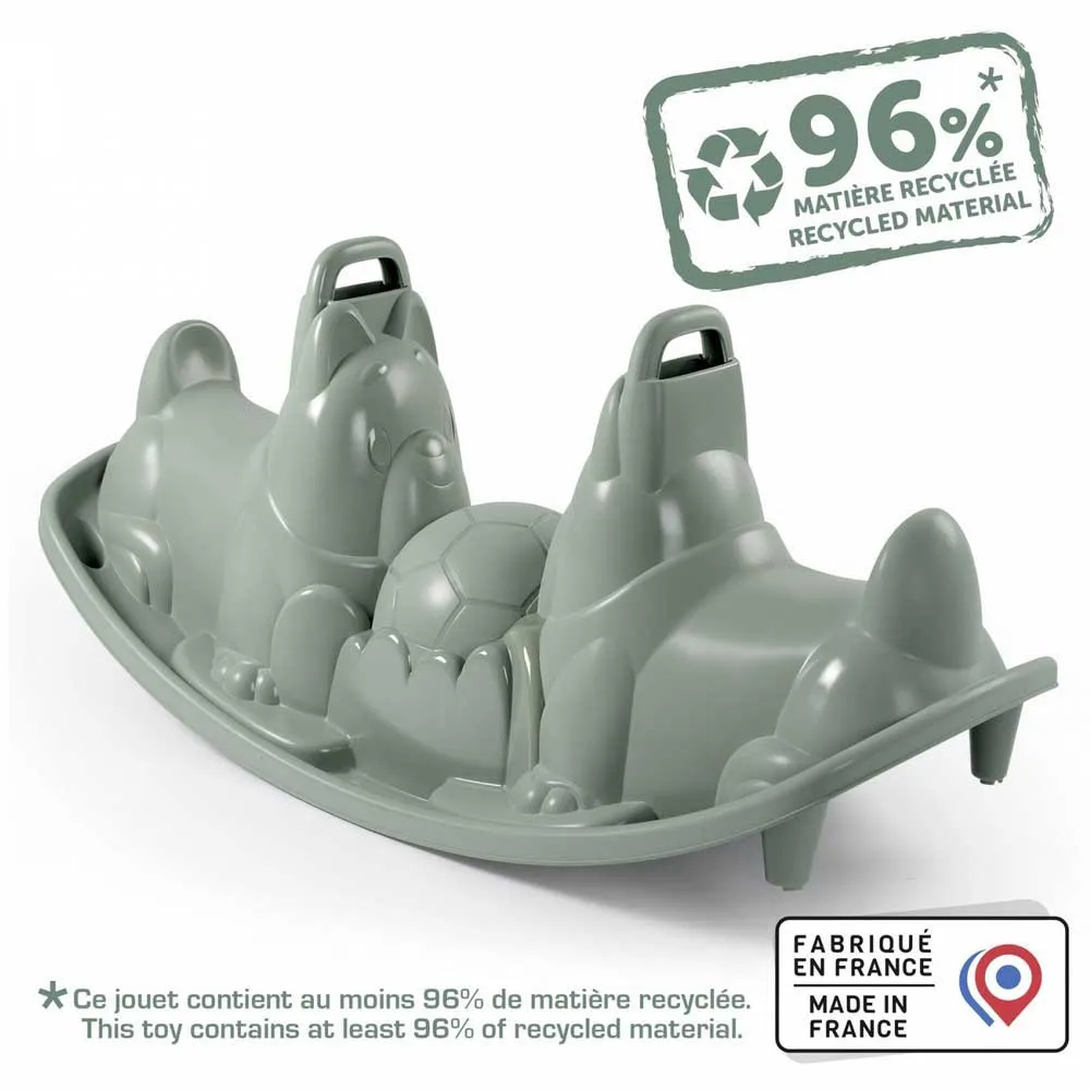 Dieses vielseitige Reittier ist sowohl für den Innen- als auch für den Außenbereich geeignet. Dank einer speziellen Anti-UV-Behandlung, die während der Herstellung angewendet wird, sind die leuchtend grüne Farbe und die robuste Struktur vor Sonnenschäden und Verwitterung geschützt. Das bedeutet, dass der Wipphund jahrelang ein heller und einladender Spielkamerad bleiben wird, egal ob er an einem regnerischen Tag im Wohnzimmer schaukelt oder die Sonne im Garten genießt. Sein leichtes Design erleichtert es den Eltern auch, ihn von einem Spielbereich zum anderen zu bewegen.