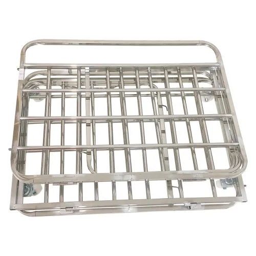 Metallkarre mit faltbarer Struktur. Es verfügt über 360°-Rollen, um den Transport zu erleichtern.