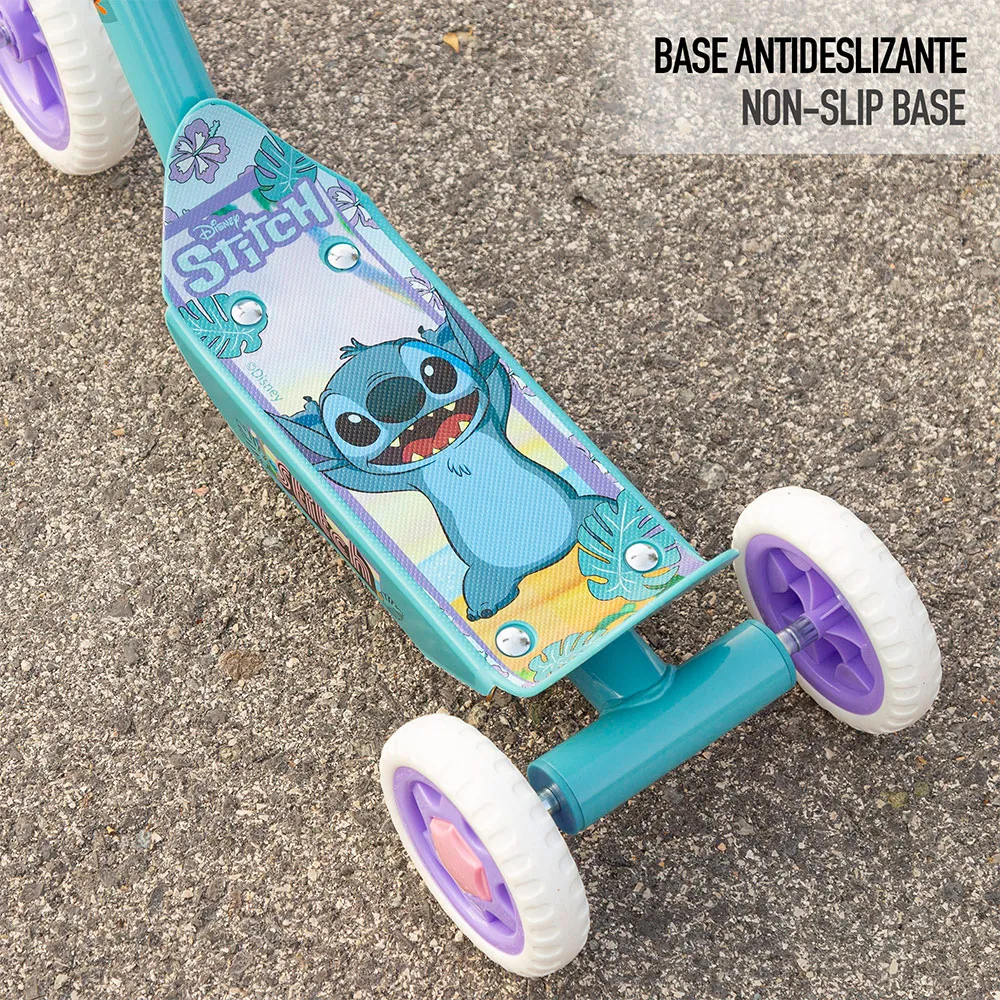 Starte das Abenteuer auf Rädern mit Stitch! Begleite deinen kleinen Liebling auf seinen ersten lustigen, sicheren und farbenfrohen Fahrten mit dem offiziell lizenzierten Stitch Dreiradroller (58x36x65-70 cm).