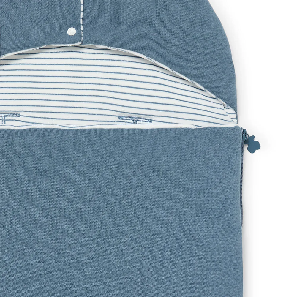 TOUS Baby Universal-Fußsack für Babybett, Tragekorb oder umkehrbaren Kinderwagen. Aus weichem Baumwoll-Sportstoff mit TOUS-Logo an der Unterseite. Innenseite aus gestreiftem Plüschstoff. Seitenöffnung mit Reißverschluss. Unverzichtbares Accessoire für die ersten Lebenstage des Babys im Winter und Sommer.