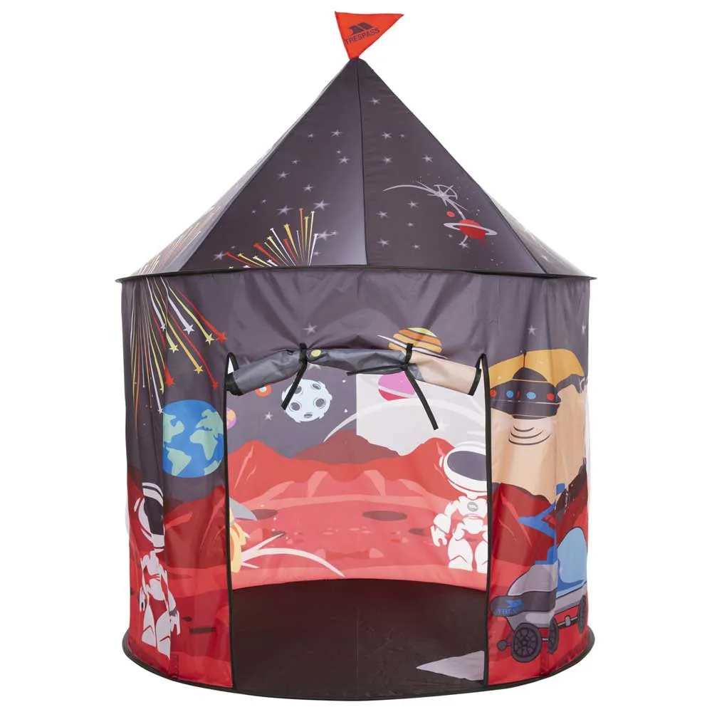 Einfache Konstruktion. Das Kinderspielzelt ist ein Pop-up-Zelt, das einfach aufgebaut und bequem in einer Trespass-Markentragetasche verstaut werden kann.