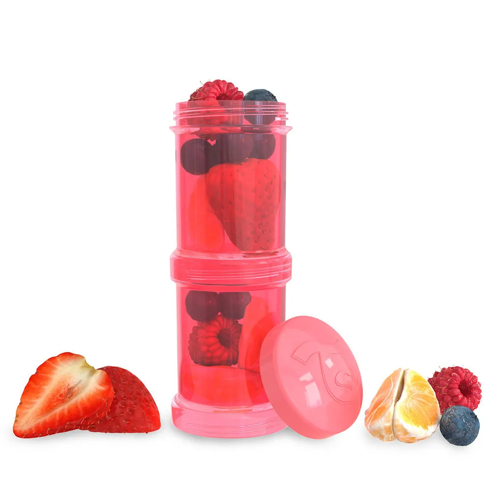Der Behälter von Twistshake ist stapelbar und kann zum Servieren von Babybrei oder Müsli verwendet werden oder als Aufbewahrung für Süßigkeiten und Snacks dienen, wenn Sie unterwegs sind.