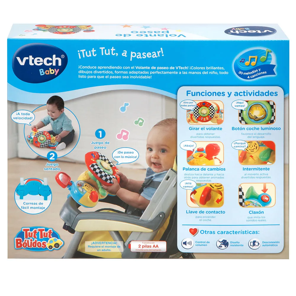Tuuut-Tuuut, los geht's! Fahren Sie in den Lernbereich mit dem Volante de paseo Tut Tut Bólidos von VTech! Dieses bunt gestaltete Rollenspiel-Spielzeug verfügt über ein drehbares, weiches Lenkrad, 2-Stufen-Kontrollampe, Zündung, Schalthebel und vieles mehr, die alle realistische Soundeffekte und lustige Phrasen auslösen.