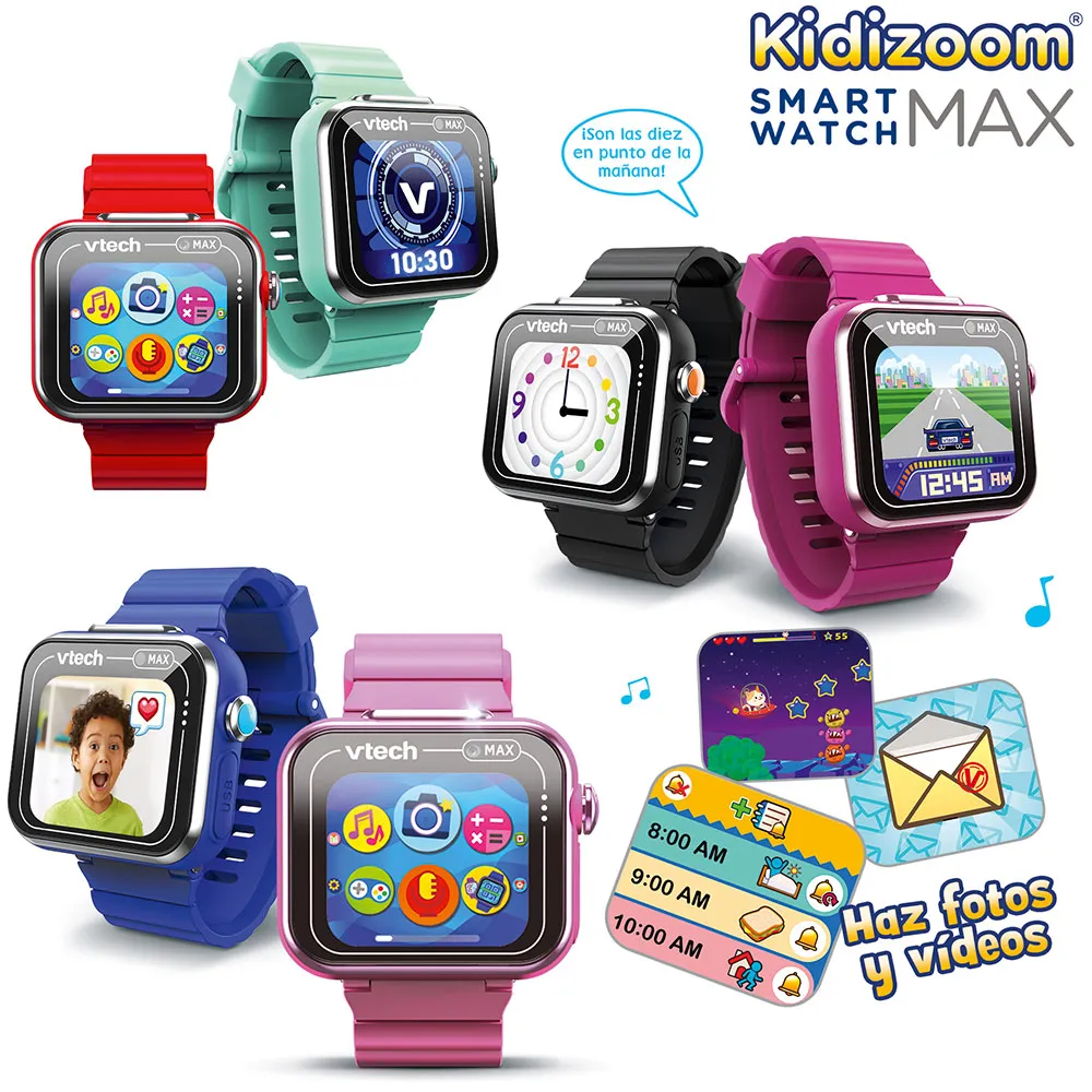 Entdecken Sie die VTECH Kidizoom Max Smartwatch! Diese leuchtend himbeerfarbene Uhr ermöglicht es Kindern, Fotos und Videos mit ihrer integrierten Kamera aufzunehmen, Spiele zu spielen und Augmented Reality auf einem 1.4-Zoll-Touchscreen zu erkunden. Vollgepackt mit Lern-Apps und anpassbaren Fotoeffekten bietet sie endlose Unterhaltung. Robust, spritzwassergeschützt und mit Kindersicherung für mehr Sicherheit ausgestattet, ist sie das perfekte Technik-Spielzeug. Dies ist die spanische Sprachversion, die für sicheren, interaktiven Spaß und Lernen direkt am Handgelenk entwickelt wurde