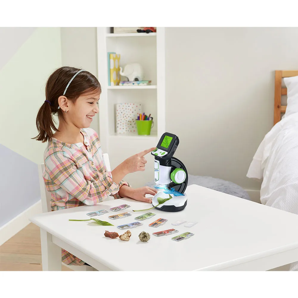 Ausgezeichnet als BESTES SPIELZEUG 2023! Entdecken Sie die Geheimnisse der mikroskopischen Welt mit dem VTech Multimedia-Lernmikroskop. Dieses interaktive Spielzeug für Kinder ab 6 Jahren ermöglicht es Ihnen, echte Proben mit 200-facher Vergrößerung zu erkunden und in unglaubliche digitale Inhalte einzutauchen, darunter beeindruckende Videos von der BBC. Nutzen Sie die 18 Smart Cards, um mehr über Zellen, Insekten, Mineralien und vieles mehr zu erfahren. Spielen Sie Abenteuerspiele, testen Sie Ihr Wissen mit Quizfragen und speichern Sie Bilder Ihrer erstaunlichen Entdeckungen. Es ist ein Universum des Lernens und der Abenteuer in einem leistungsstarken Mikroskop