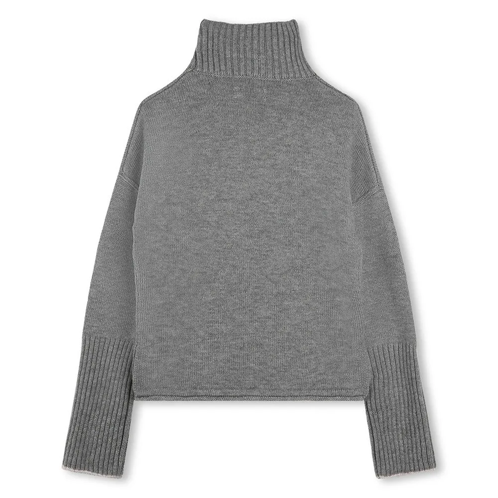 65% Wolle 35% Polyamid Pullover mit hohem Kragen, Stickereien in Farbe A39, Intarsien in Farbe F20, Lochmuster vorne, Daumenlöcher, inspiriert von.