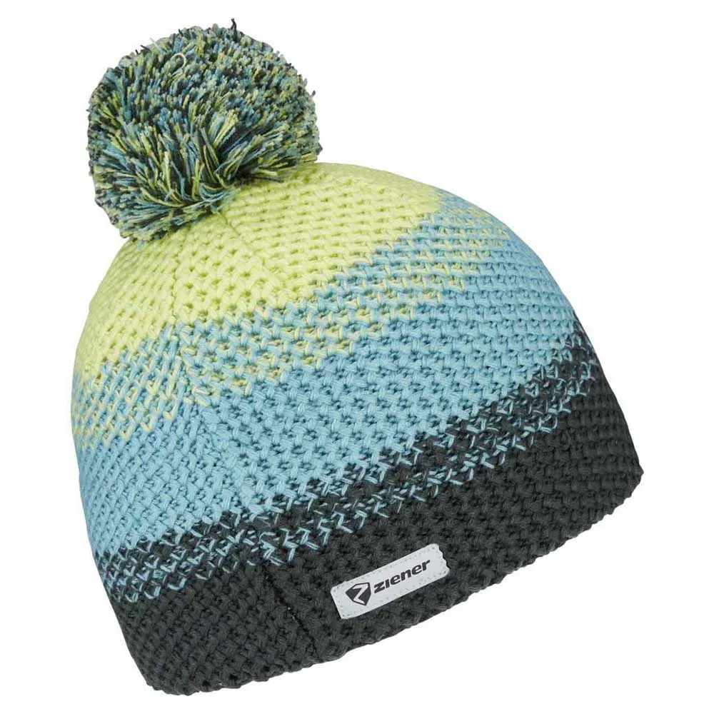 Warme, dreifarbige Strickmütze mit Bommel. Die warme, dreifarbige ZIENER Kinderstrickmütze ISHI JUNIOR HAT ist mit einem Bommel und reflektierenden Designelementen ausgestattet. Die bunten Blockstreifen bringen Farbe in den Alltag und machen diese Mütze zum perfekten Begleiter für alle Outdoor-Aktivitäten. Das Produkt enthält recyceltes Material - für einen ressourcenschonenden Einsatz.