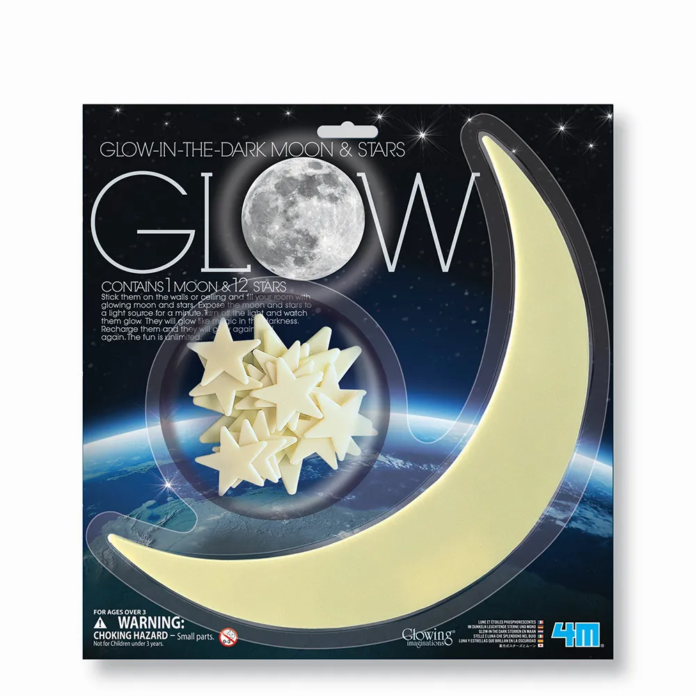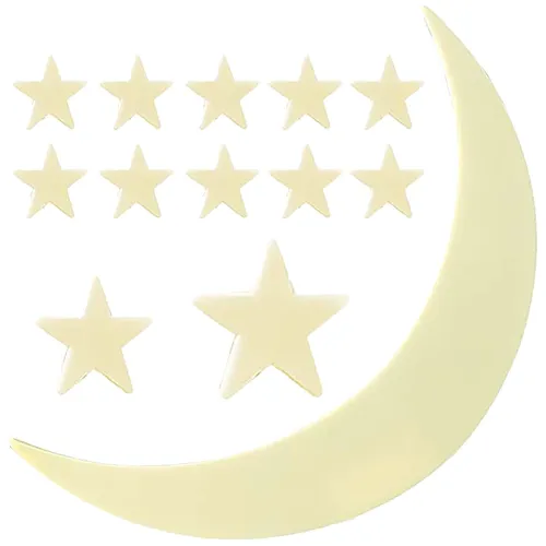 This set contains 1 large moon and 10 small stars that glow in the dark.