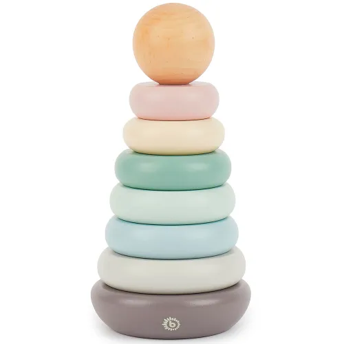 The high-quality wood of the stacking toy feels particularly nice in the hands of your little treasure.
