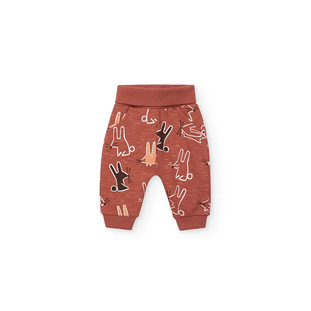 The sweatshirt features a cheerful design with adorable animal figures, while the trousers perfectly complement the look with a coordinated style.
