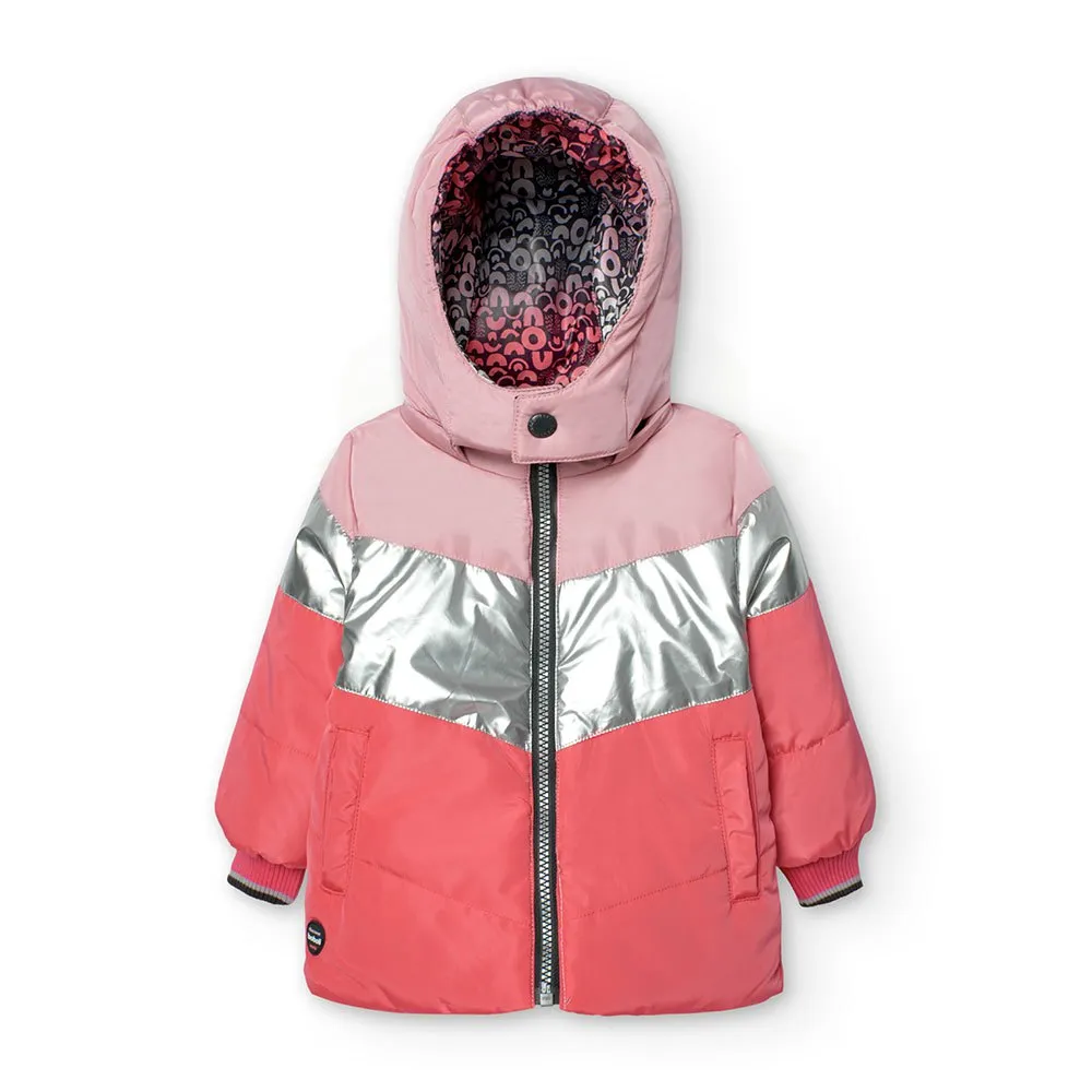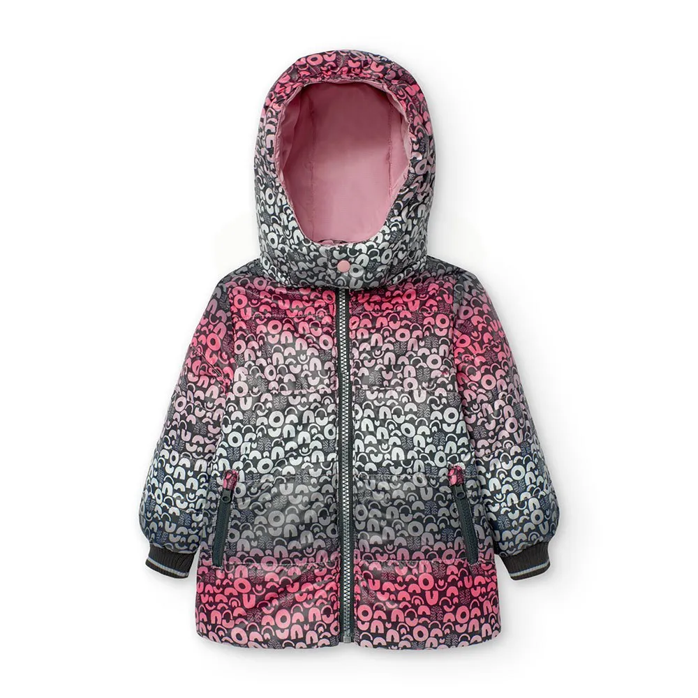 This is a reversible parka for baby girls, ideal for winter.
