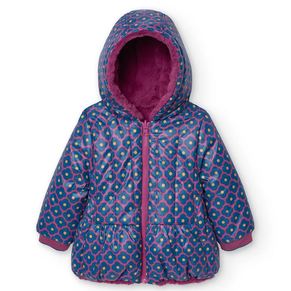 This is a reversible parka for baby girls, ideal for winter.