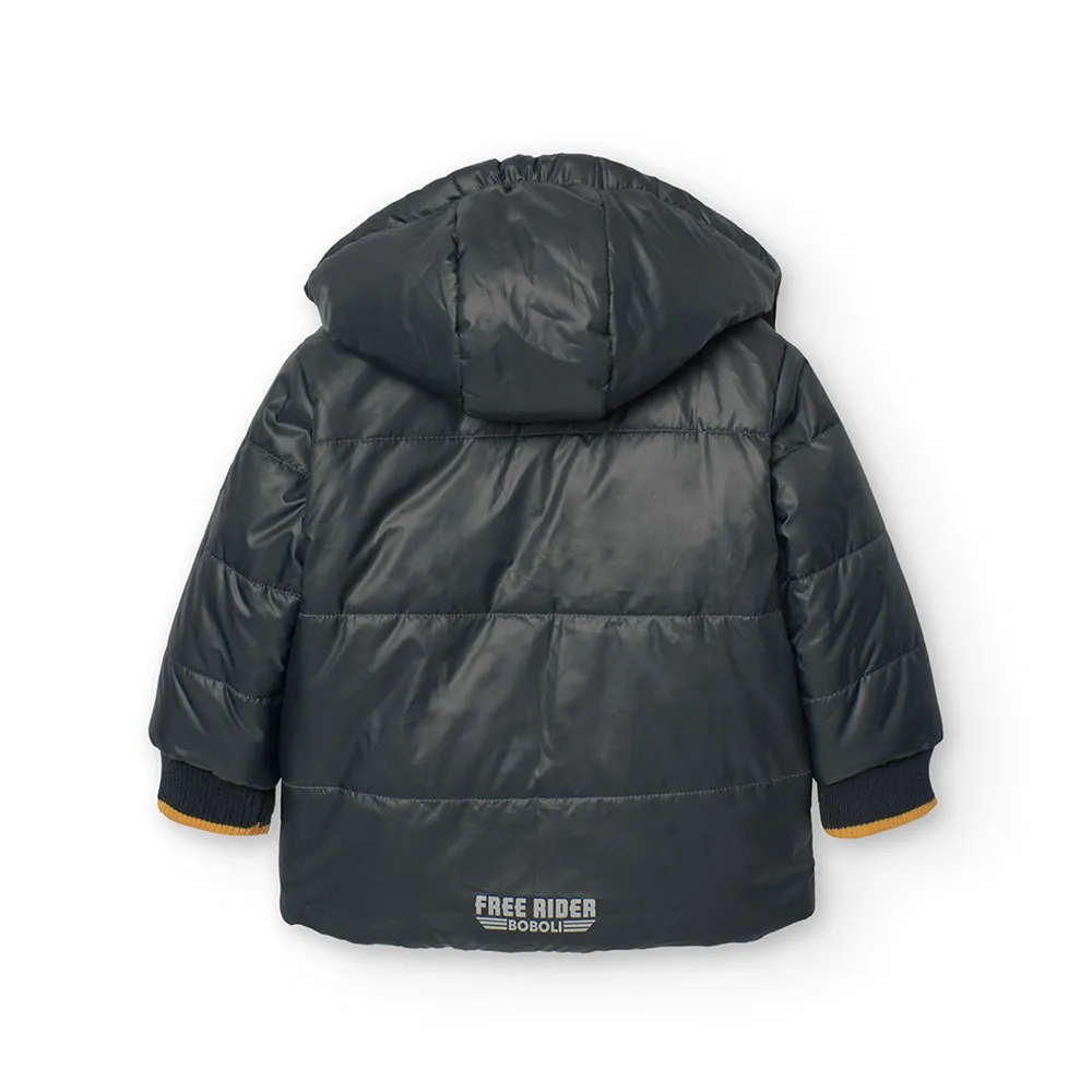 This is a reversible parka for baby boys, ideal for winter.