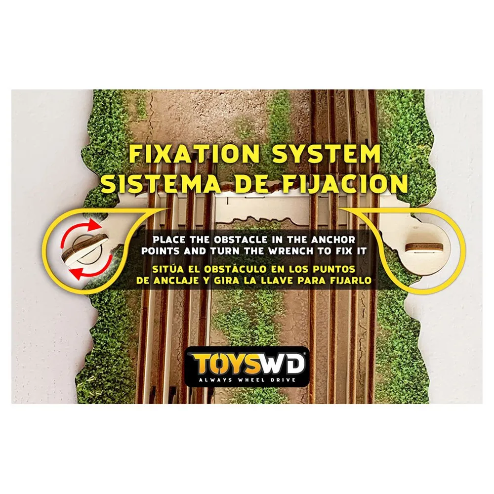 With this kit you will be able to adapt and fix the obstacles that do not include supports to your Crawler Park puzzle-style tracks.