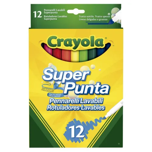 Unleash a world of vibrant creativity with the CRAYOLA Set of 12 Washable Super Line Markers. Designed for artists of all ages, this essential set from a world-renowned leader in art supplies offers the perfect combination of brilliant color, incredible versatility, and stress-free cleanup, making it a must-have for any home, classroom, or art studio.