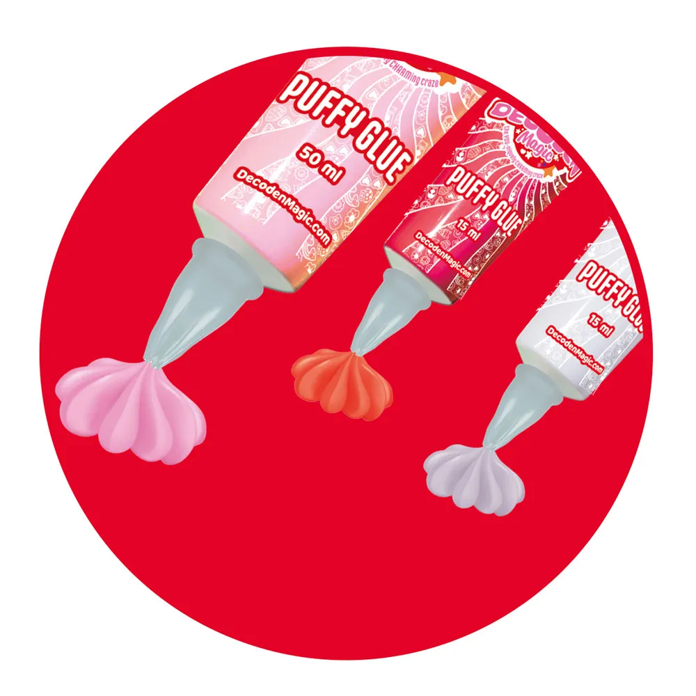 3 decoden bottles, 3 nozzles, 15 charms, 75 beads, 50 gems, 1 tweezer, 10 stickers and 1 jewelry box.