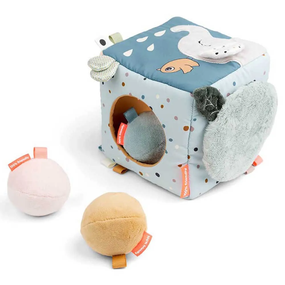 Hide your own treasures inside the cube or use the three squeezable rattle balls in cute colours that are included.