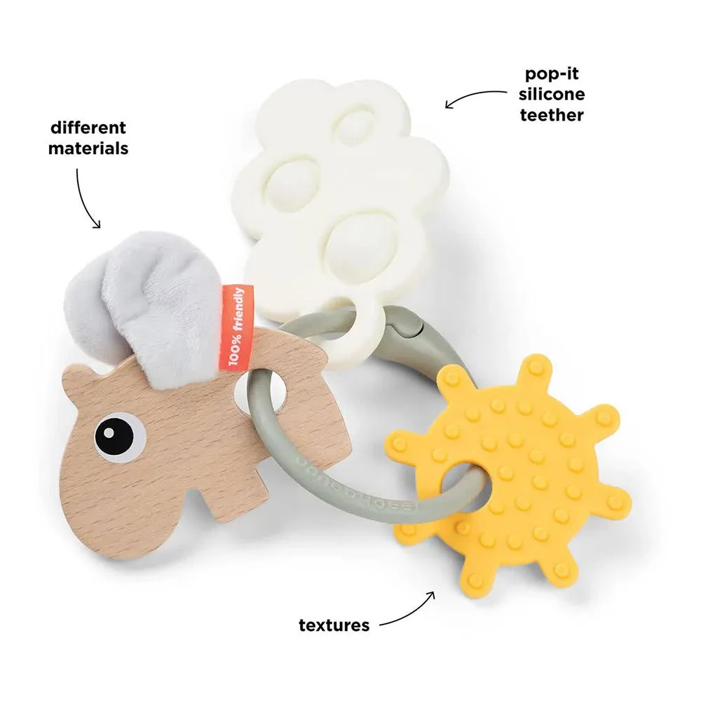 The various textures provide relief during teething, while the playful rattle sound when shaken stimulates your little one´s hearing.