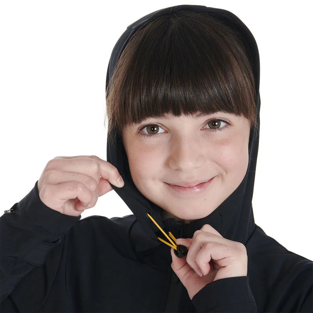 Equipped with hood, windproof zip with double slider, drawstrings at the waist and adjustable wrist with velcro strap.