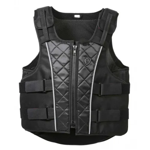 Body protector with high density foam padding, very supple and light. Front zip fastening, side and shoulder adjustments with self-gripping tapes. Full-cover sides, support belt adjustable inside with clip fastening. Detachable cover, hand washable: outside in nylon, lining in polyester/nylon. Padding in high density foam. Delivered on clothes hanger in a cover transparent at the front.