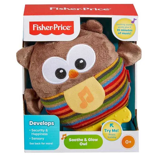 The Soothe & Glow Owl from Fisher-Price is a cuddly plush toy that lights up and glows, with hoot-hoot sounds and more than 15 minutes of soothing music.