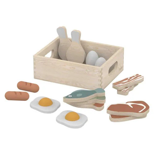 With this wooden fish and meat set, your child can serve up a delicious breakfast, lunch or dinner for two.