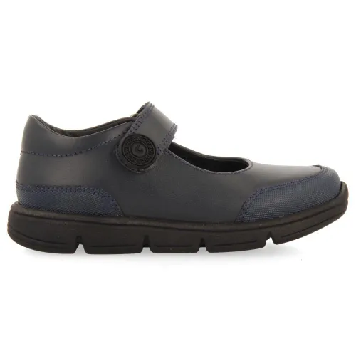 To face all the challenges of the new school year! Dark blue leather school ballet flats with adjustable closures.