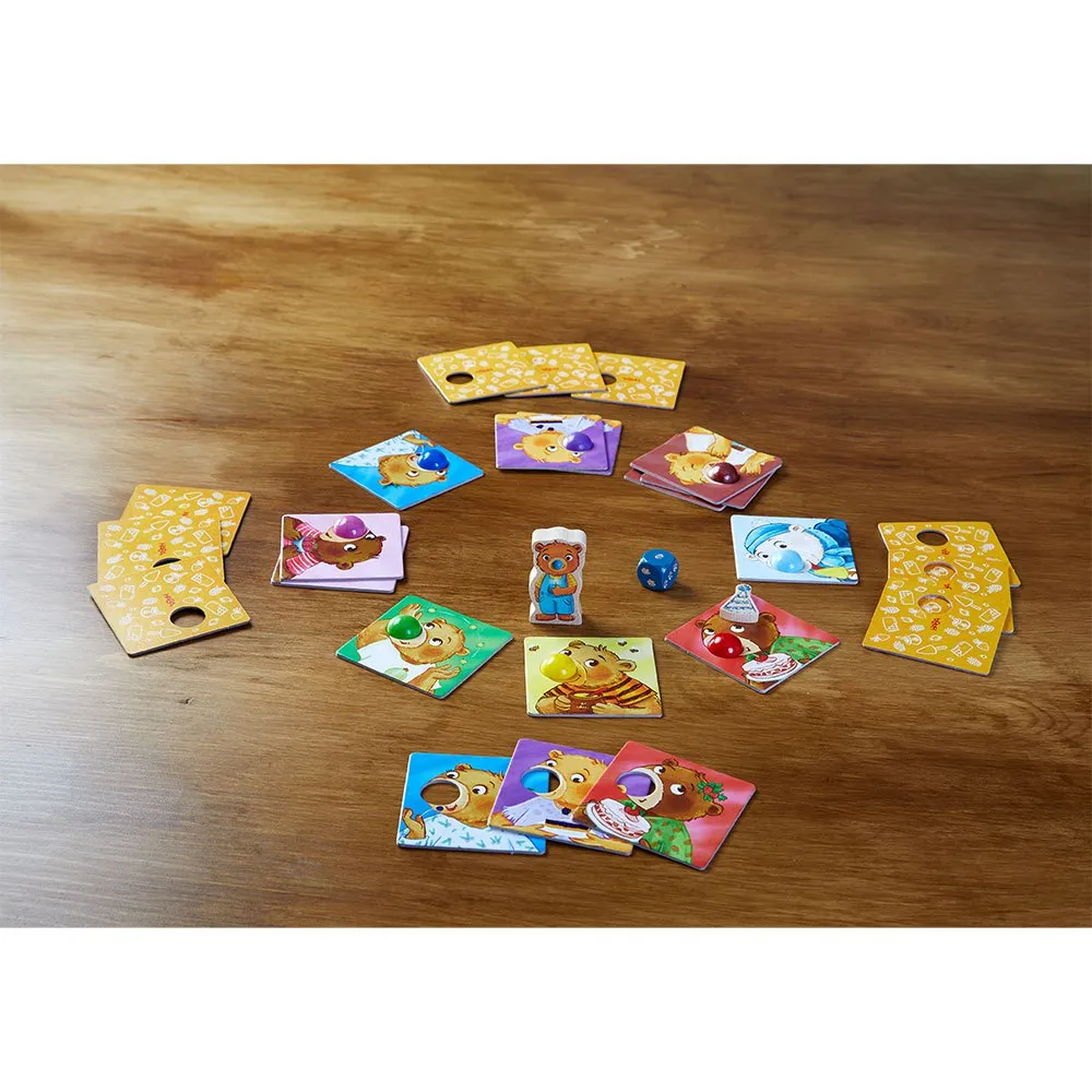 A dice game in which, taking turns, we must get rid of the six bear cards we have in our hand by placing them on the corresponding colored nose.