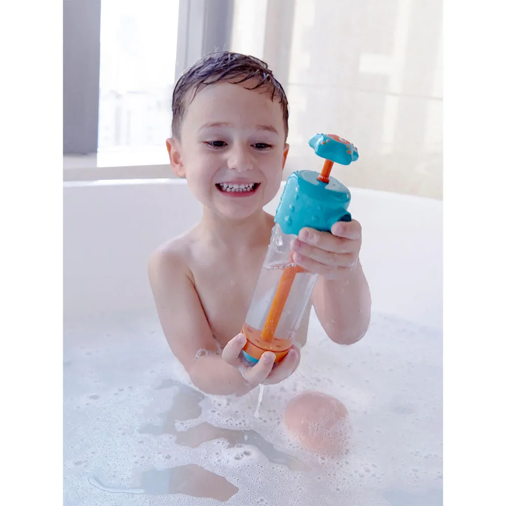 Shoot all the water you can with the water pump! This water pump has four built-in nozzles that shoot water in different ways, adding a touch of fun to bath time.
