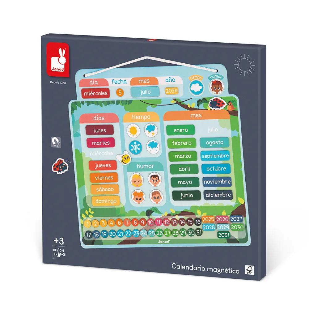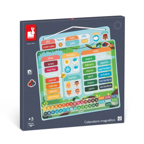 The calendar consists of a board to hang up and 68 magnets for displaying the date (day/month/year) and 3 animal magnets to play with on the board! This fun, educational toy is ideal for helping your child learn to situate themselves in time.