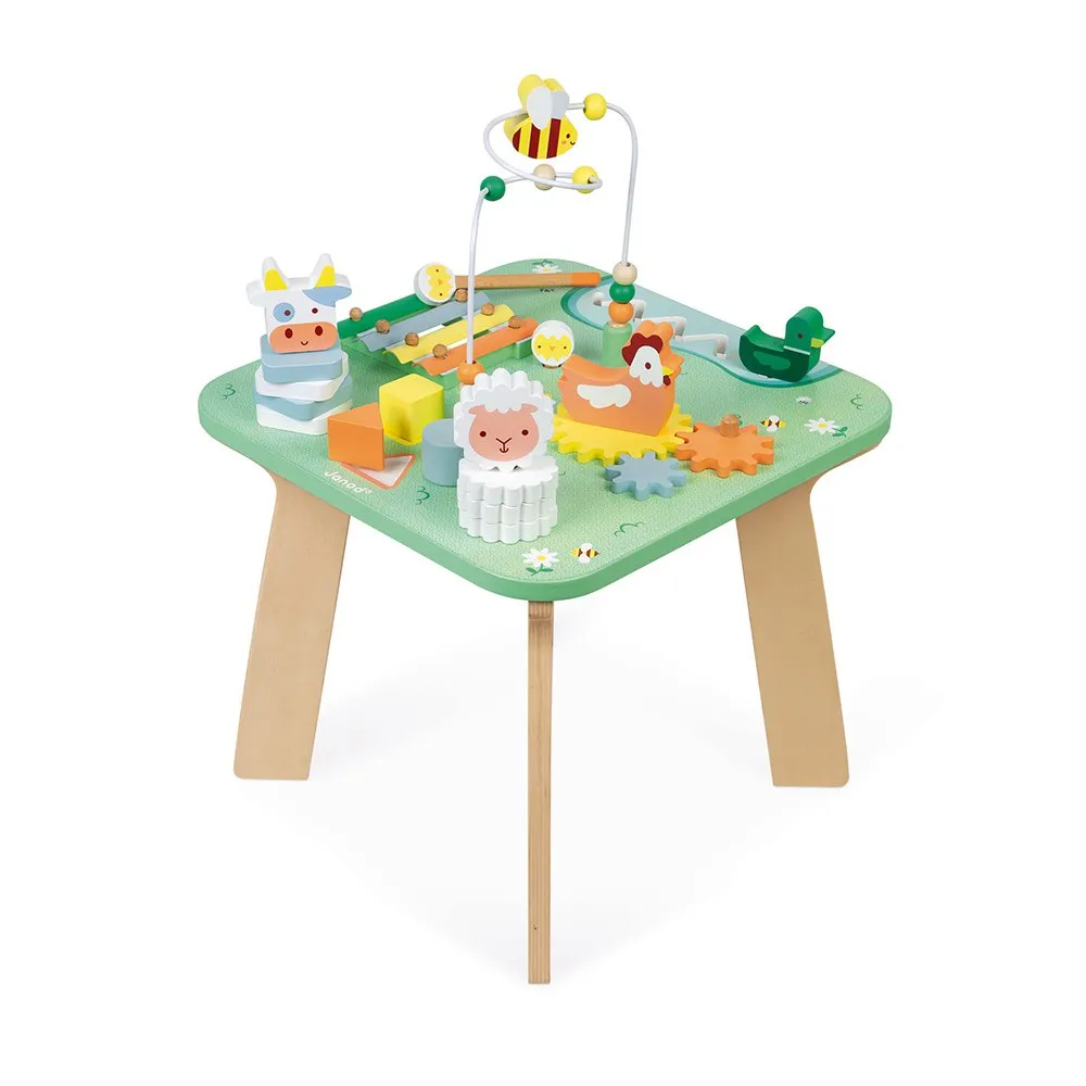A lovely farm-themed multiactivity table that is ideal for introducing your child to new games! This comprehensive table offers 7 activities:- 2 animals that may be stacked in 2 ways to develop your child´s fine motor skills.
