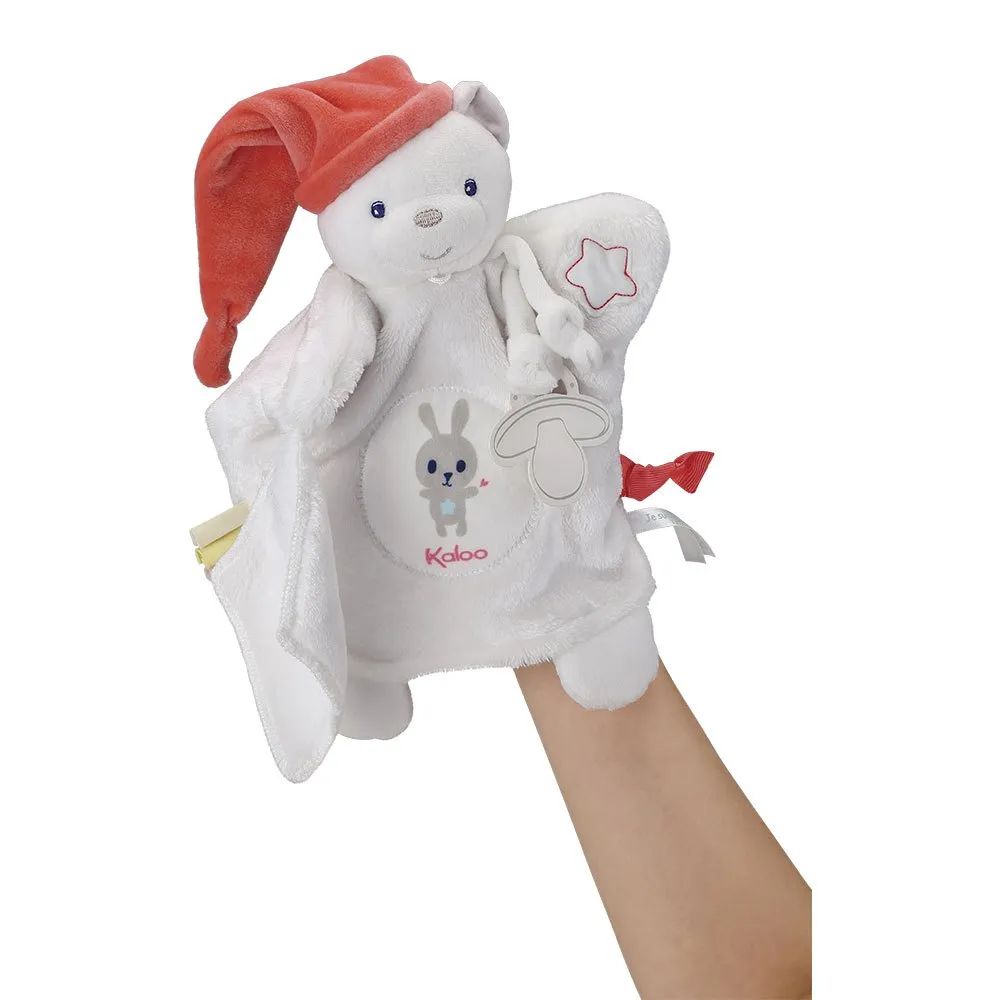 A super soft teddy bear, at once a cuddle toy to comfort your little one and a puppet to share tender moments of closeness between parents and baby.