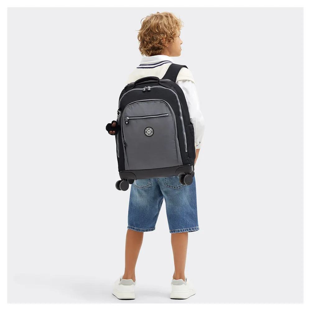 Meet the KIPLING New Zea, the ultimate 26L junior trolley backpack designed for busy school days. This versatile bag combines the convenience of a wheeled suitcase with the classic style of a backpack. Protect your tech in the padded 15" laptop sleeve and keep everything organized with A4-sized compartments and multiple pockets. Smooth-rolling wheels and a telescopic handle make heavy loads effortless. Crafted from durable polyamide with a recycled lining, it also features safety reflectors and Kipling´s iconic furry monkey charm for a touch of fun