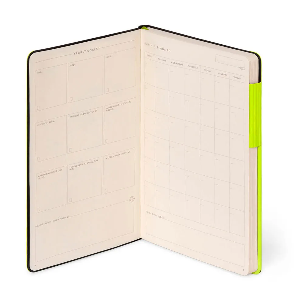 Get organised and get creative with the Legami My Notebook with lined pages - Chartreuse Cover - Large. With numbered pages, an index, world map and lots of helpful layouts, this notebook has everything you need to start new projects and plan your days. The paper is FSC certified (FSC-C154586), coming from well-managed forests, FSC certified forests and other controlled sources.